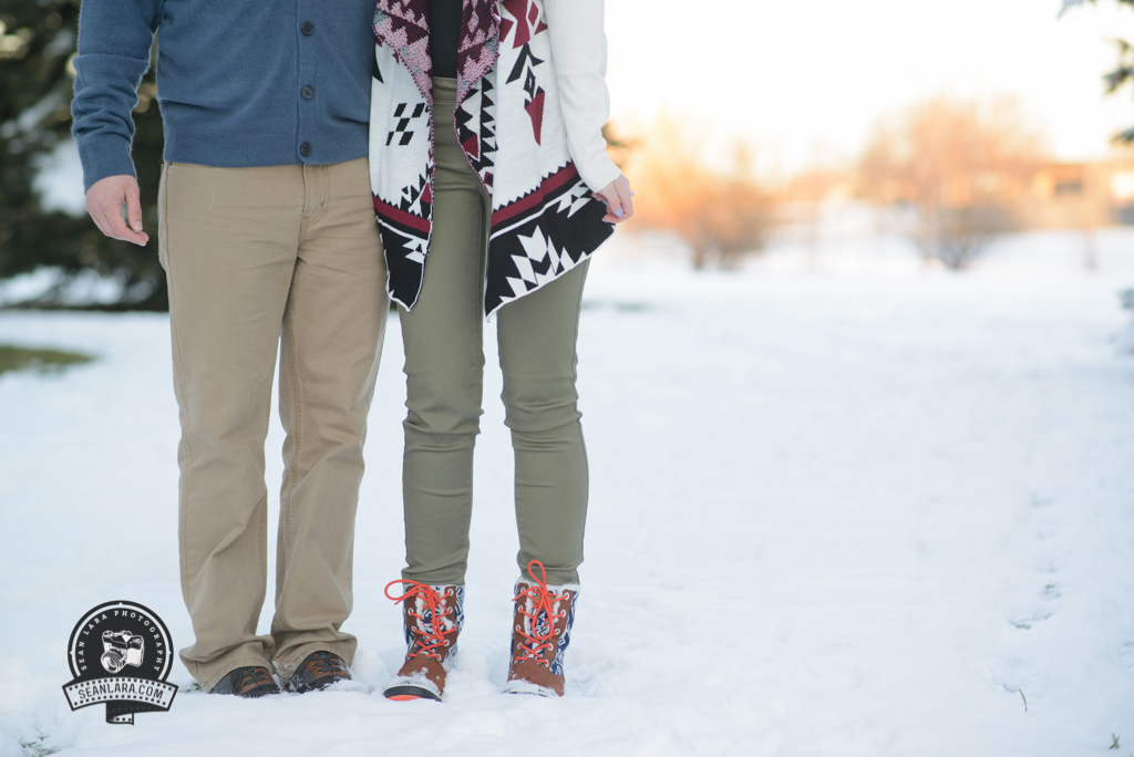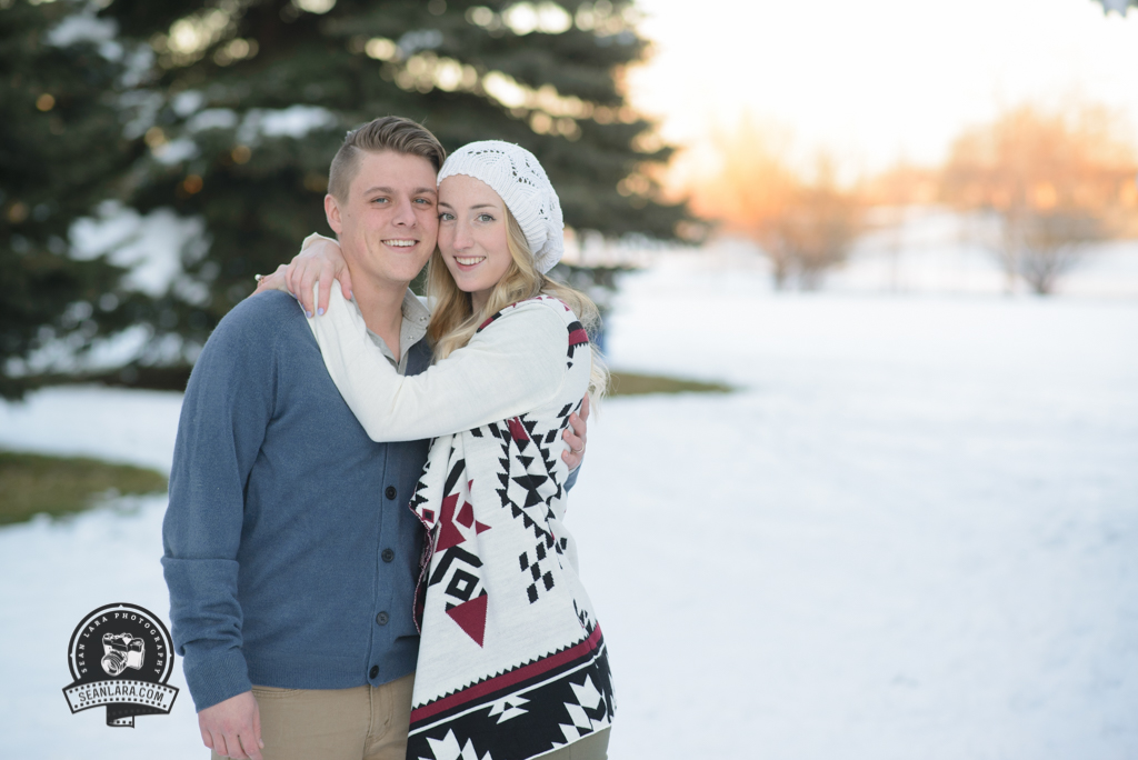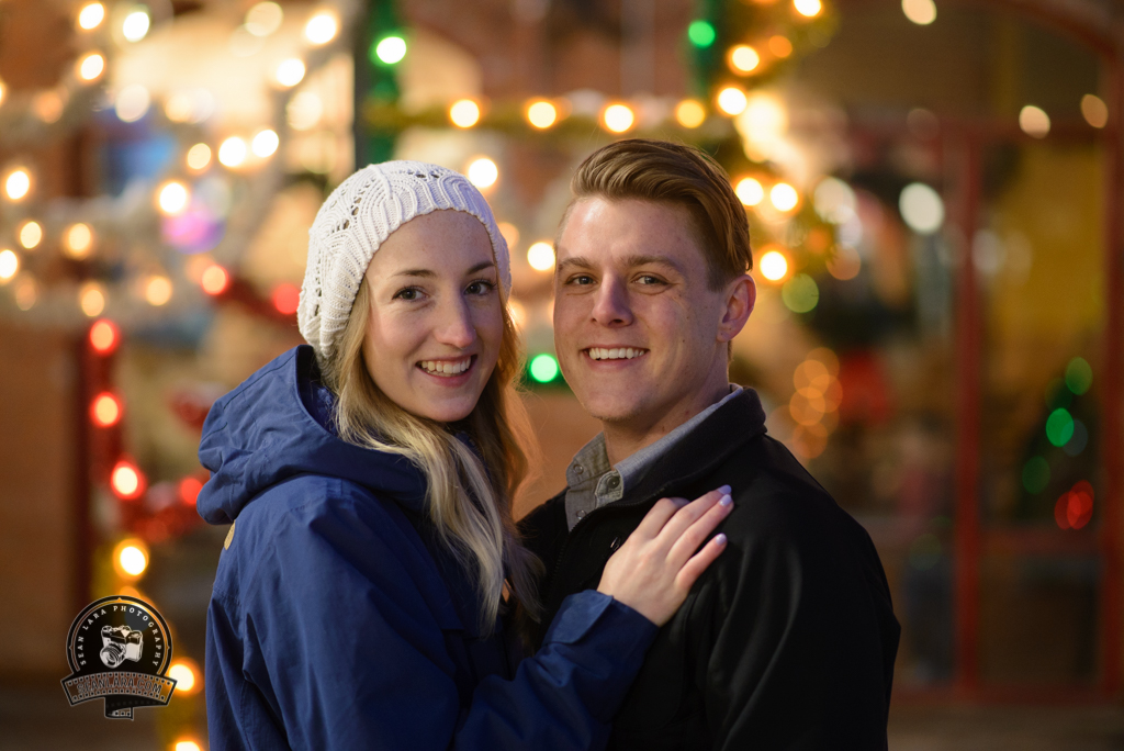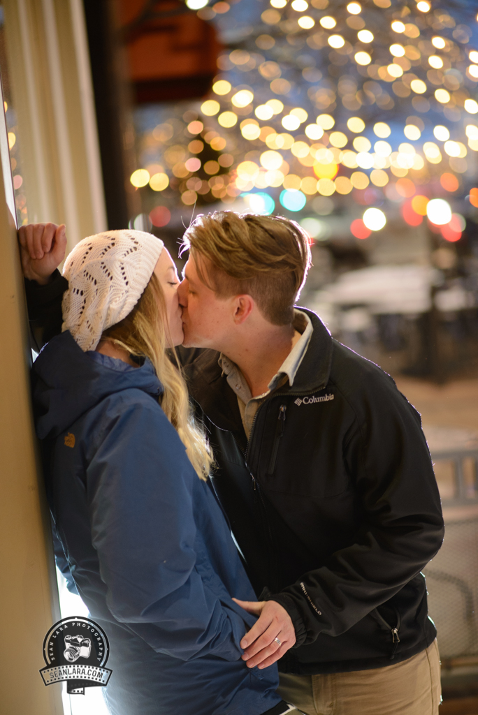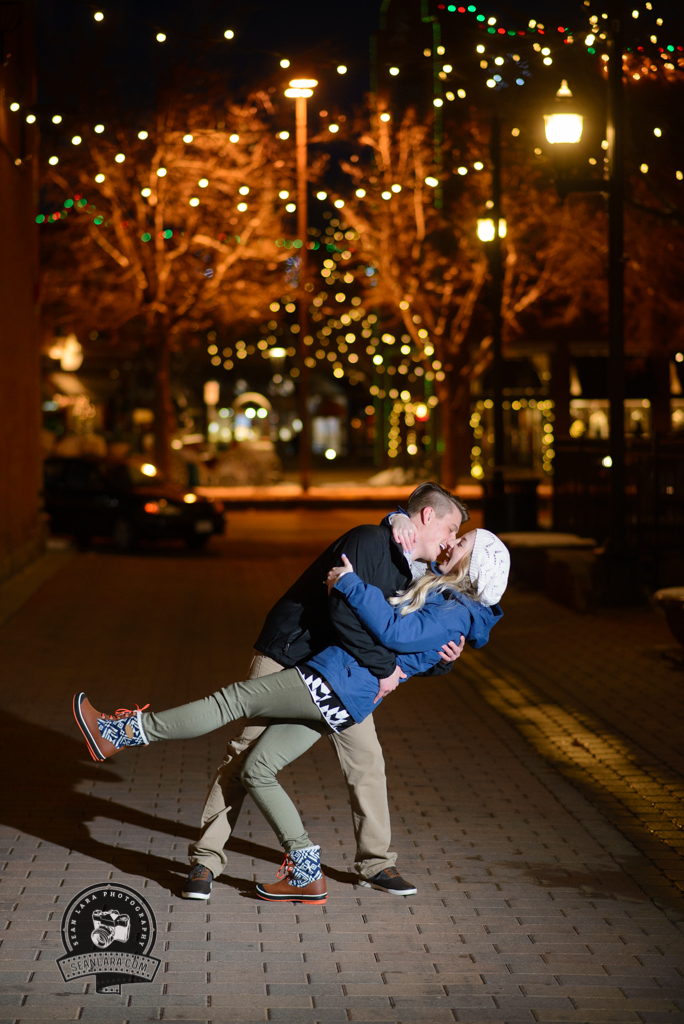 : Whether you’re a fan of it or not, it’s inevitable that you’ll experience some snow in Colorado. Fortunately for us, the snow and holiday decorations make a fantastic setting for some winter engagement photos in Fort Collins. I took Lukas and Sara out to a local park in town, that had a freshly-dusted layer of snow. I timed the photo session around the sun so we could capture some of the orange glow as it began to set behind Horsetooth. The combination of the color from the sun and the white landscape made for some beautiful photos. Afterwards, I took our lovely couple to Old Town Fort Collins to capture some of the lights Fort Collins is so famous for this time of year.