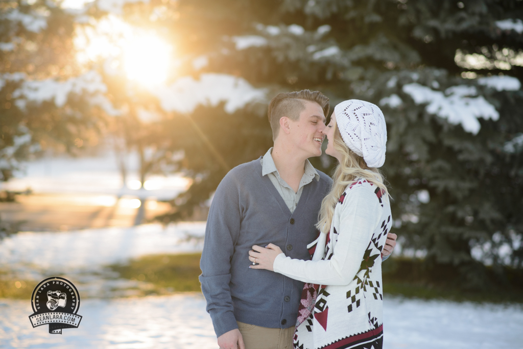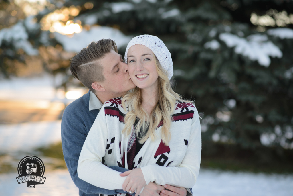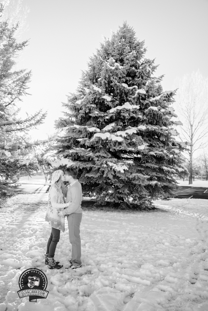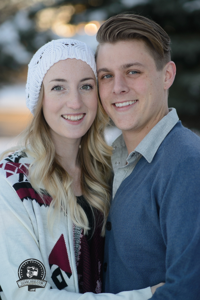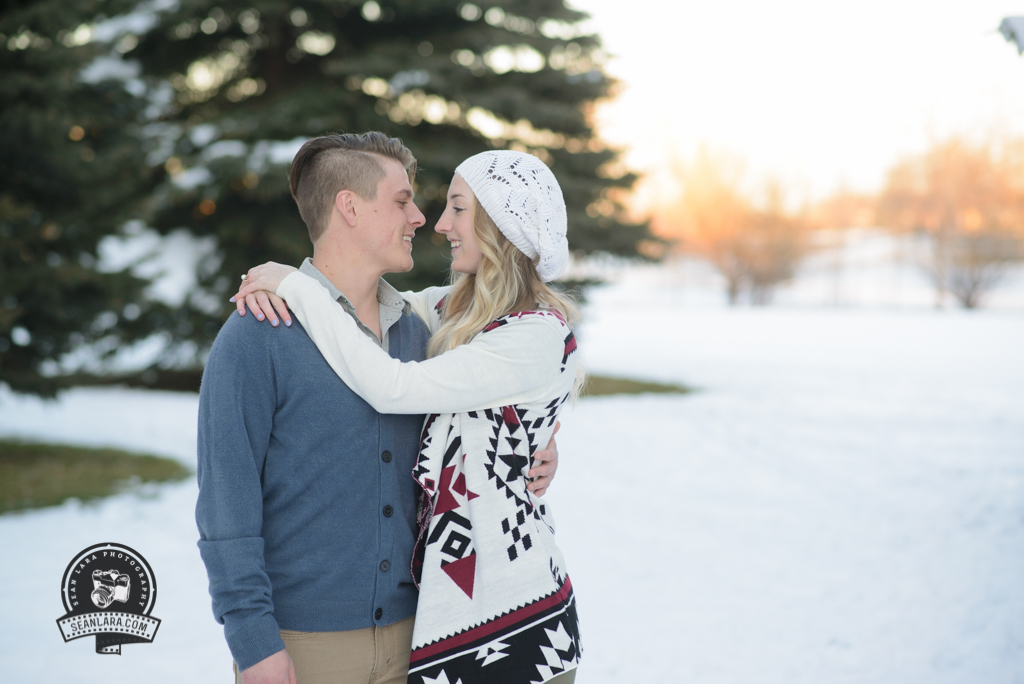 : Whether you’re a fan of it or not, it’s inevitable that you’ll experience some snow in Colorado. Fortunately for us, the snow and holiday decorations make a fantastic setting for some winter engagement photos in Fort Collins. I took Lukas and Sara out to a local park in town, that had a freshly-dusted layer of snow. I timed the photo session around the sun so we could capture some of the orange glow as it began to set behind Horsetooth. The combination of the color from the sun and the white landscape made for some beautiful photos. Afterwards, I took our lovely couple to Old Town Fort Collins to capture some of the lights Fort Collins is so famous for this time of year.