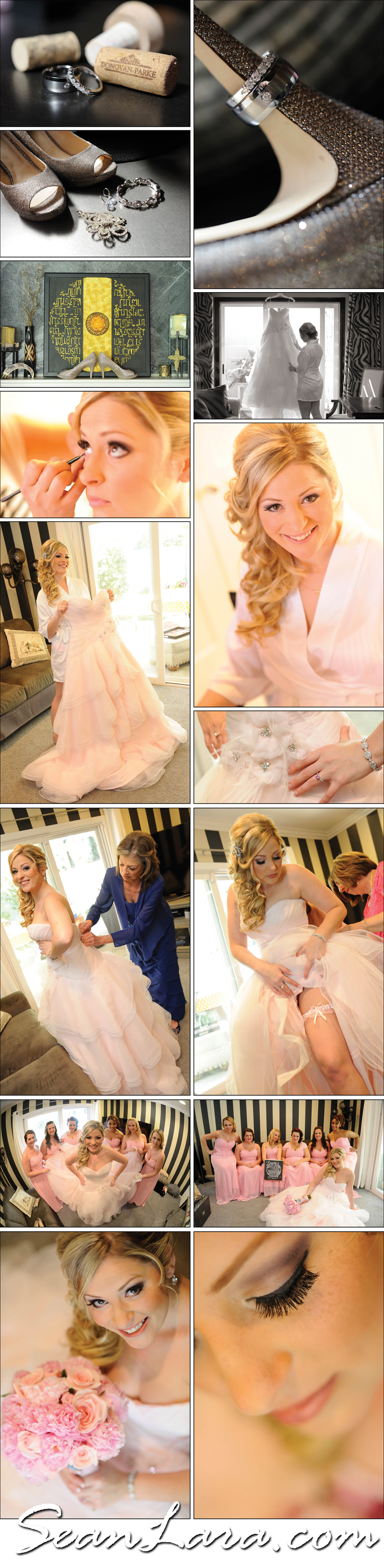 is a beautiful venue on the bank of Lake Forest Lake in Orange County. Growing up in this area, I’ve passed by this lake many times and never had the opportunity to visit it (due to it being private) so I was looking forward to shooting a wedding here. I started my day photographing the women while my associate photographer Oliver hung out with the guys. As with every wedding, I started by capturing the details of my bride’s attire starting with the rings, shoes, garter and other jewelery. What really captured my eye though was her